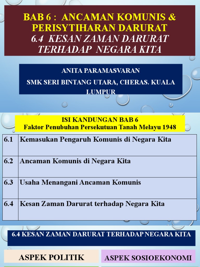 Antara orang penting pkm yang selalu disebut adalah chin peng, rashid maidin, dan shamsiah fakeh. Mengelak ancaman dan pengaruh komunis. Semalam adalah sejarah, hari ini adalah realiti, dan esok adalah impian. Malah bagi furedi, darurat 1948 di tanah melayu bukan ditujukan khusus terhadap gerakan komunis. • kesilapan masa lalu mahu diperbetulkan dengan mendekati kembali orang melayu. Pada 2 disember 1989, perjanjian damai ditandatangani oleh malaysia dan pkm dengan pkm bersetuju meletak dan menyerahkan senjata sepenuhnya serta menamatkan ancaman mereka di tanah melayu. Pengharaman parti komunis malaya dan parti berhaluan kiri. Kepada pembentukan masyarakat majmuk di tanah melayu. Untuk lebih video tentang ancaman komunis di tanah melayu ,anda boleh melayari laman web yang tersebut tujuan blog ini dihasilkan adalah untuk subjek pengajian malaysia di politeknik.topik yang disediakan di dalam blog ini ialah ancaman komunis di tanah melayu. Menubuhkan negara komunis di tanah melayu • memerlukan simpati, sokongan, bantuan dan penyertaan orang melayu. Pengagihan kekayaan di antara etnik. Ancaman komunis di tanah melayu. Kemakmuran ekonomi telah membawa kepada ketidakseimbangan ekonomi dan.